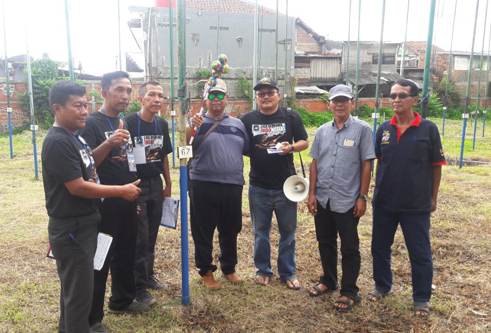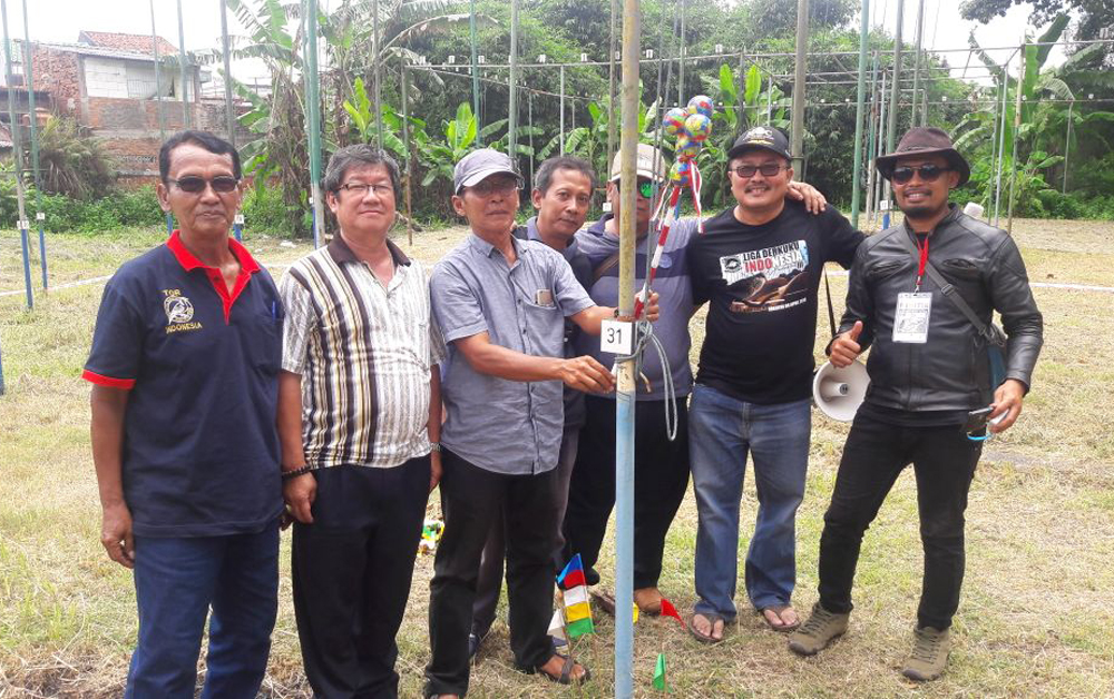 Sigit Irianto menancapkan bendera juara pertama pada derkuku Gading milik Ko Liang.