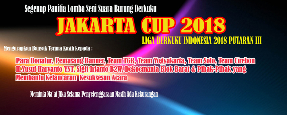 Akhirnya lomba seni suara burung derkuku bertajuk Jakarta Cup 2018 usai digelar. Menempati lokasi di lapangan Taman Mini Indonesia Indah (TMII) Jakarta, acara dihadiri tidak kurang dari 100 peserta. Tidak ada yang istimewa dari siapa yang akhirnya menjadi juara, karena seperti yang diprediksi sebelumnya bahwa posisi kejuaraan tidak akan mengalami perubahan posisi pada even-even sebelumnya.