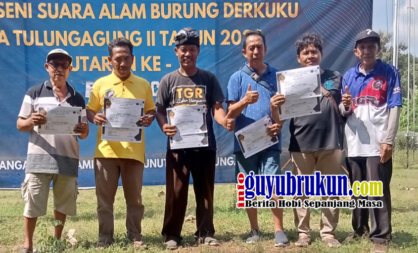 Menyusul pada urutan kedua, Bagong andalan N3 Bird Farm Tulungagung, derkuku hasil ternakan N3 yang berada di nomor kerekan 28 dan urutan ketiga dimenangkan Sulaiman orbitan Bukhori Tulungagung, derkuku bergelang IBUK 518. Diakhir acara, panitia mengucapkan banyak terima kasih atas dukungan dan kehadiran peserta. Permintaan ma’af juga disampaikan jika selama acara, ada hal-hal yang kurang berkenan.